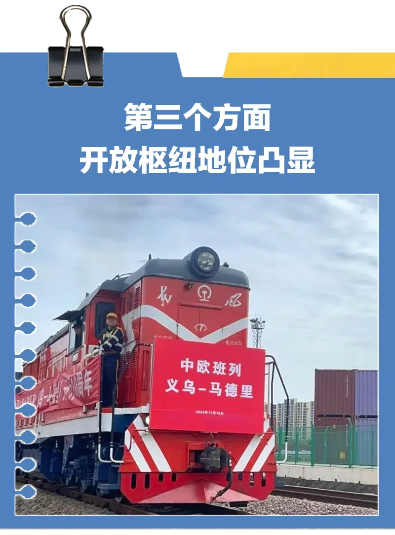 获批金华(义乌)中欧班列集结中心,班列线路增至26条,累计开行突破1.3万列。
