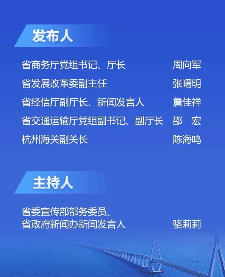 下一步,浙江将认真贯彻落实党的二十届四中全会精神和习近平总书记考察浙江重要讲话精神,按照省委、省政府决策部署,持续推动“八八战略”走深走实,扎实推进高水平对外开放、建设高能级开放强省,为高质量发展建设共同富裕示范区、加快打造“重要窗口”、奋力谱写中国式现代化浙江新篇章,注入强劲开放动能!