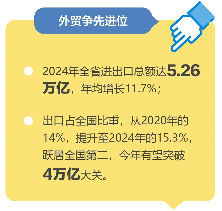 “十四五”时期,是浙江对外开放取得长足进步的五年。浙江深入践行“八八战略”,聚焦“132”总体部署,锚定打造高能级开放强省,突出抓好平台提能级、枢纽建强、模式创新三件大事,全力提升资源配置力、全球辐射力、制度创新力、国际竞争力,全力打造服务最优、成本最低、效率最高的开放环境,切实增强话语权、定价权、规则权,推动全省高水平对外开放迈上新台阶。
