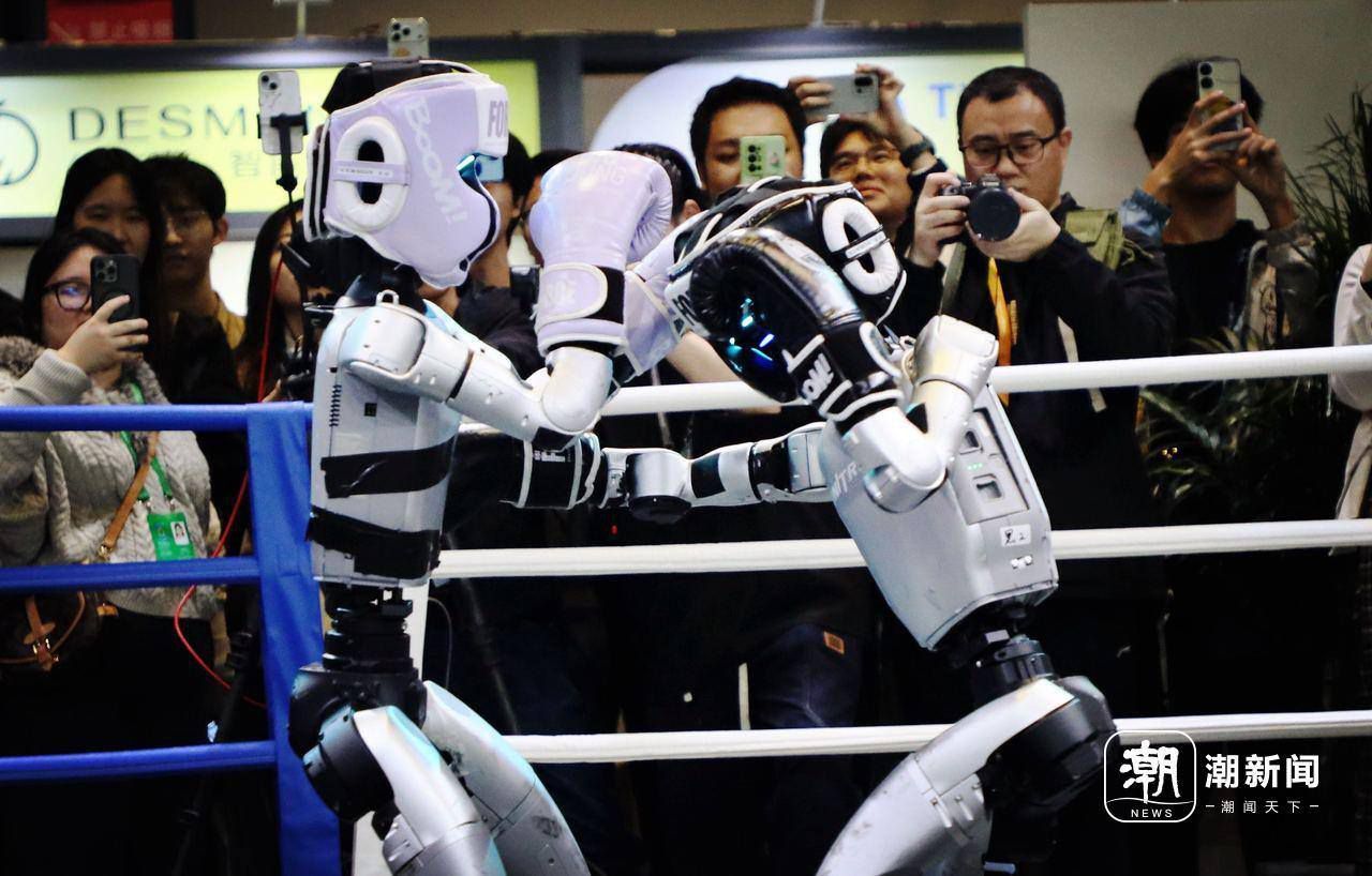 在浙江乌镇举行的2025年世界互联网大会“互联网之光”博览会上,一场具身机器人搏击赛激情上演。潮新闻记者 吴煌 摄