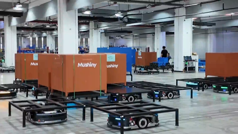 在位于湖州的牧星机器人公司,几十台最新的“潜伏顶升式”机器人,正在开展穿梭测试。这些机器人能灵活适应多种复杂地面,实现对货品的分拣和配送功能。