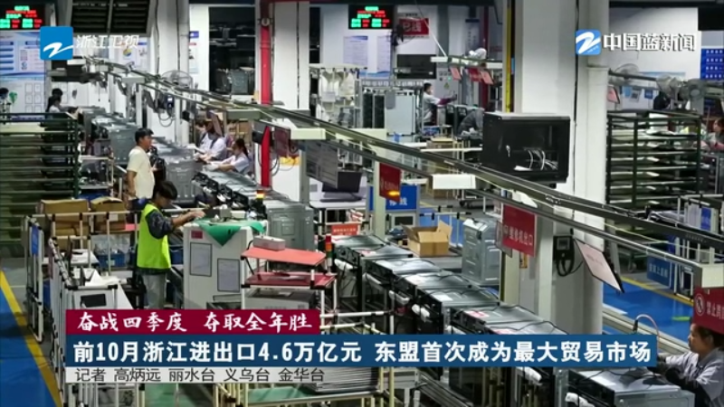 今年前10月,浙江进出口市场结构持续多元,对共建“一带一路”国家进出口2.63万亿元,增长8.4%;对欧盟进出口总值7029.4亿元,增长7.5%,对东盟进出口总值则达到7106.1亿元,增长16.2%,东盟首次超越欧盟,成为浙江最大贸易市场。