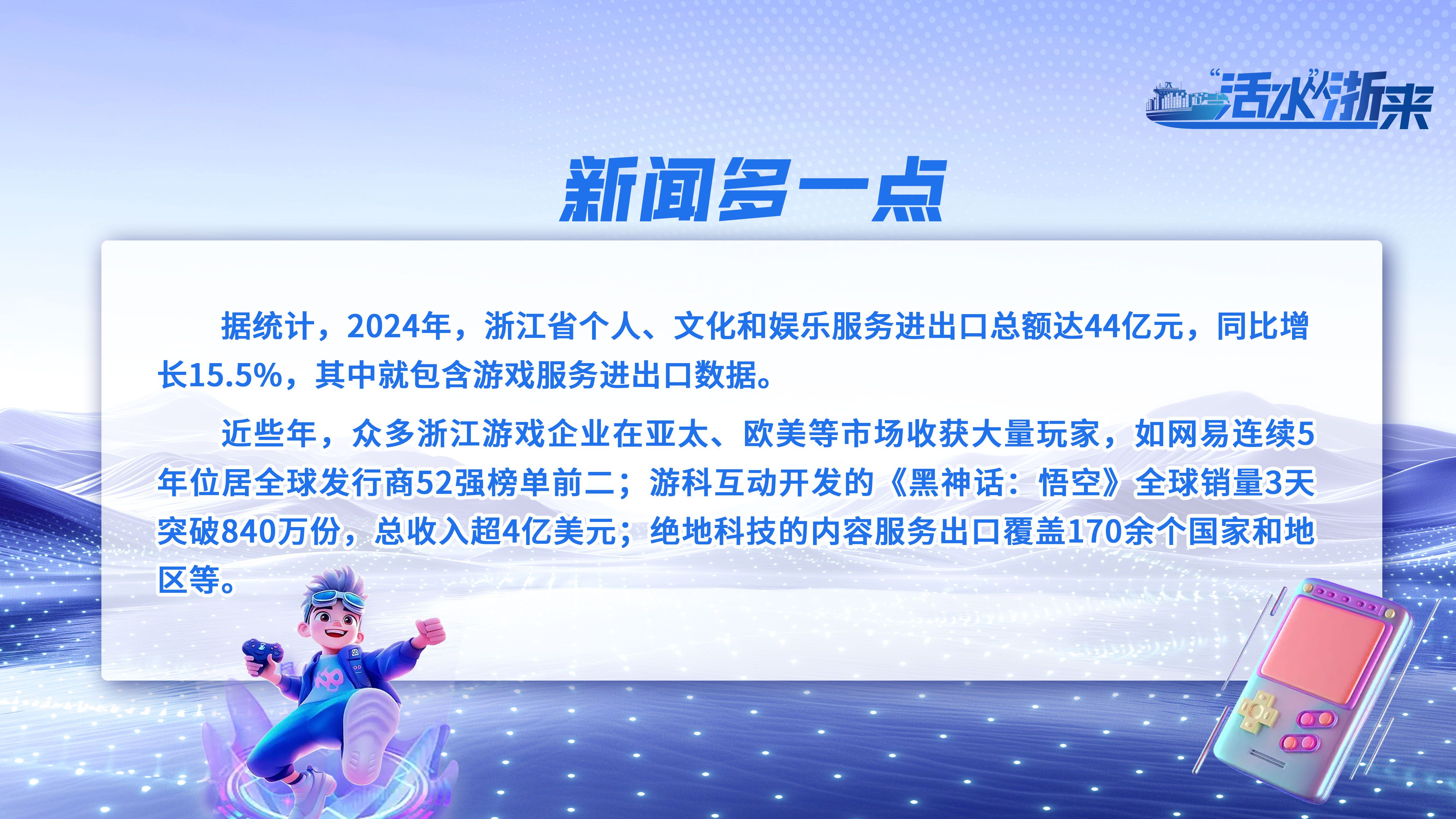 从《无尽冬日》到《黑神话:悟空》,随着国产游戏不断在海外收获关注,中国文化产品的全球吸引力逐步提升。其中,作为数字贸易强省的浙江,在本土游戏“海外淘金”的过程中表现出强劲实力。