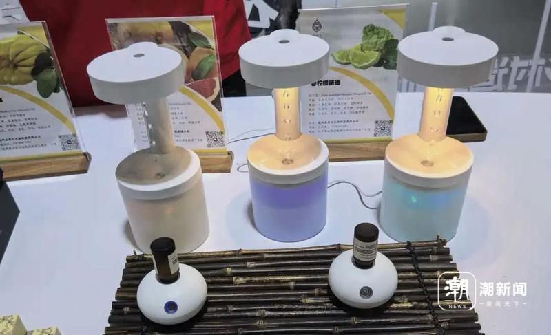 沈鹏拿来参展的精油和配套加湿器产品。记者 来逸晨 摄