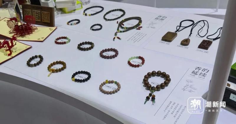 黄彬彬带来参展的乡村新特产——冷凝香手串和饰牌。记者 来逸晨 摄