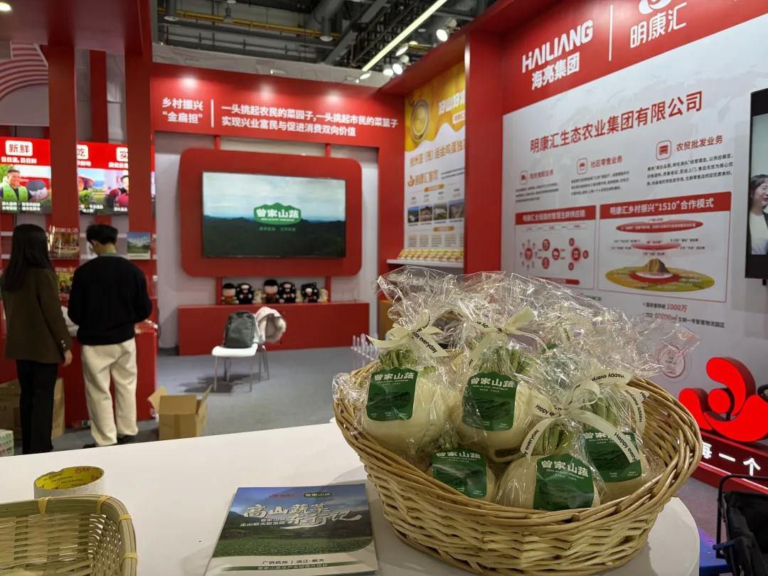 “两年前,书记就到过我们在景宁的‘大漈·明康汇’高山果蔬示范基地,告诉我们要利用好当地生态优势,通过明康汇供应链渠道优势,让杭州市民吃上好蔬菜。”在龙头企业展区,明康汇联席总裁李长江向涌金君秀出一个新进展——“广供杭州-曾家山蔬”系列产品。