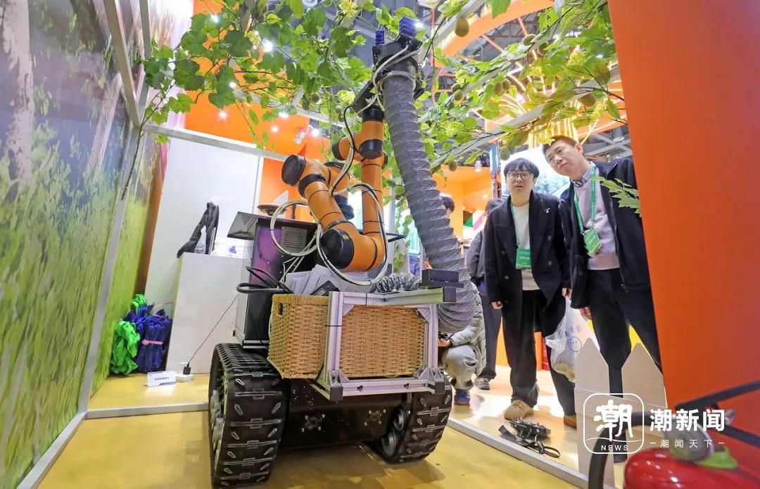 农博会现场展示的水果采摘机器人。记者 林云龙 摄