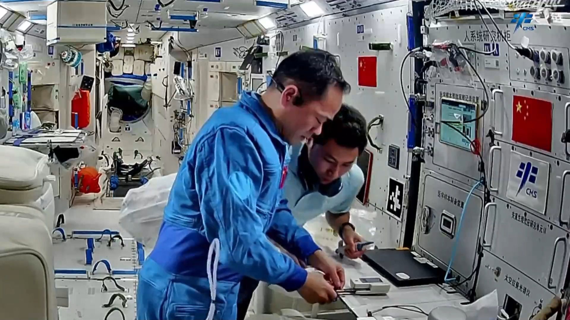 在站务管理方面,乘组开展了物资整理、舱内环境清洁等工作,持续守护太空家园的干净整洁。