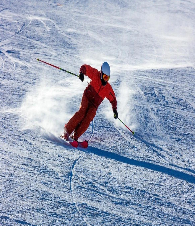 雪板选择遵循“择短不择长”原则,新手雪板建议比身高短10-15厘米,便于控制速度;滑雪杖以手臂下垂后肘部距地面高度为宜,需选择质轻不易折断的材质。服装方面,应采用“保暖抓绒+防水外套”的分层穿搭,裤子选择高腰带背带款式,防止进雪。滑雪鞋需合脚,以脚趾能略微接触鞋顶为佳,手套应选择防水透气的结实面料,护腕、护膝等护具能有效降低受伤风险。