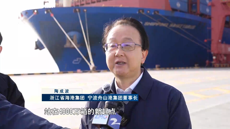 上午9时许,在宁波舟山港梅山港区9号泊位,随着这件集装箱被稳稳地吊装上船,宁波舟山港年集装箱吞吐量,迎来首破4000万标箱的历史性时刻。
