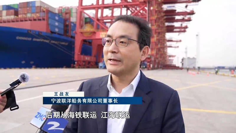 宁波联洋船务有限公司董事长 王战友: 心情非常激动。宁波多少港一直在大力建设当中,前期是码头的建设,后期海铁联运、江海联运、海河联运等多种运输模式,把很多外贸企业的货集中出口。