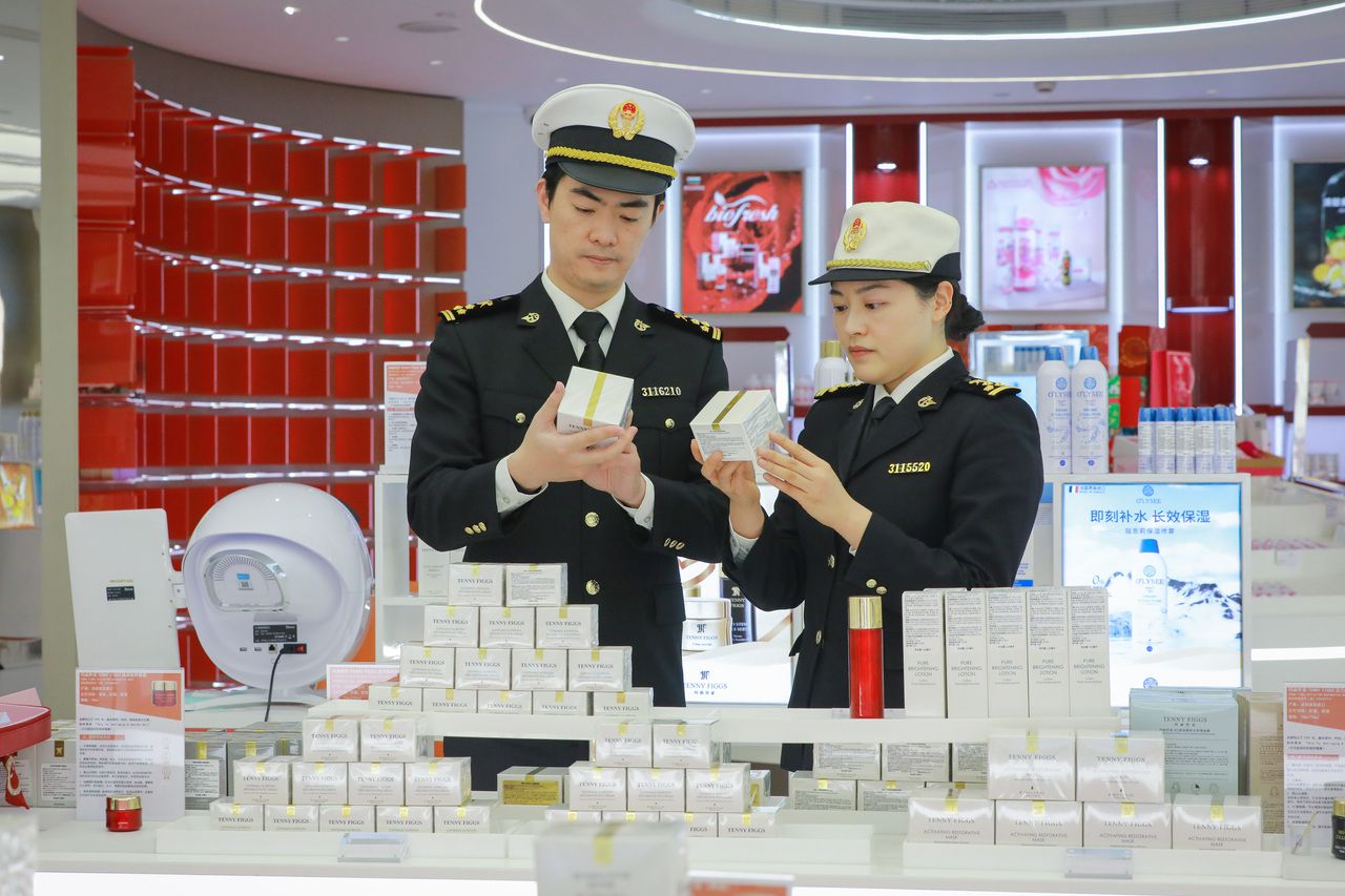 宁波海关关员在跨境电商线下自提中心开展现场监管。王海涛 摄