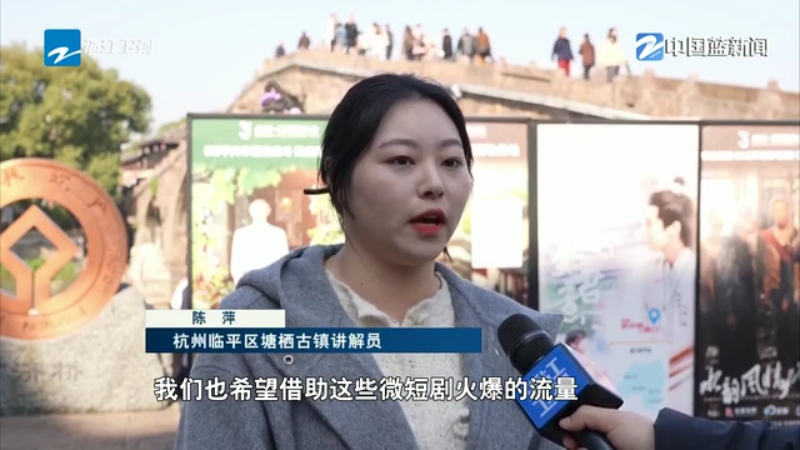 杭州临平区塘栖古镇讲解员 陈萍:我们也希望借助这些微短剧火爆的流量,能实实在在转化成我们塘栖古镇的客流量,来走进我们古镇的剧中场景,感受我们的风土人情。