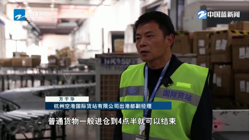 杭州空港国际货站有限公司出港部副经理 方干华:普通货物一般进仓到4点半就可以结束,但二楼跨境电商货物进仓基本上是进到凌晨12点左右。