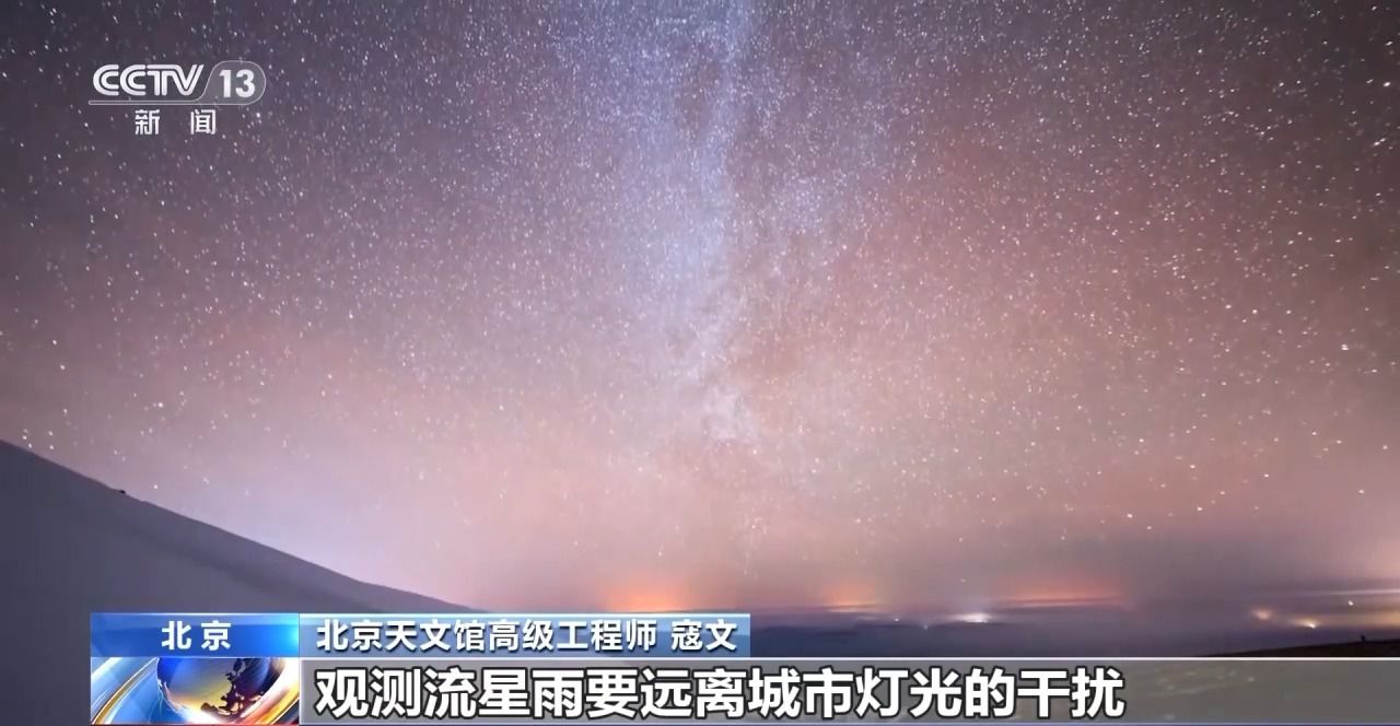 北京天文馆高级工程师 寇文:观测流星雨要远离城市灯光的干扰,因为流星的亮度有亮的有暗的,天光越亮,暗的流星就会被淹没掉,所以一定要躲开城市的灯光。