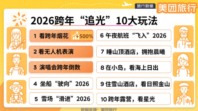 新潮玩法与暖冬风情吸引北方游客南下。浙江将跨年氛围与文旅资源深度融合,“追光游”成为新风尚,看烟花秀、无人机倒计时、海岛迎日出等玩法搜索量上涨超500%。东极岛凭借独特地理位置,成为追寻2026第一缕晨光的热门目的地,民宿、船票搜索量翻倍,上海、杭州、宁波游客占比居高不下。南浔古镇的烟花秀、音乐会让千年古风碰撞现代跨年元素,乐清的明星跨年演唱会则直接带动小城文旅热度,吸引大量省外游客涌入。北方游客在感受浙江暖冬气候的同时,既能体验冰雪运动,又能游览西湖、大运河等景点,“冰雪+人文”的独特体验形成闭环。数据显示,截至12月21日,2026元旦浙江文旅预订增速达117%,成为江浙沪乃至北方游客跨年首选地之一。