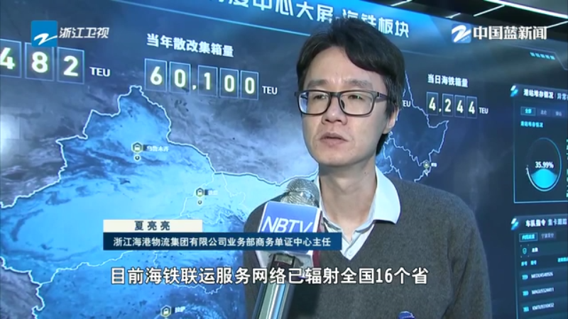 浙江海港物流集团有限公司业务部商务单证中心主任 夏亮亮:目前海铁联运服务网络已辐射全国16省(自治区、直辖市)的69个地级市,班列开通29条,增量及增速保持全国前列。