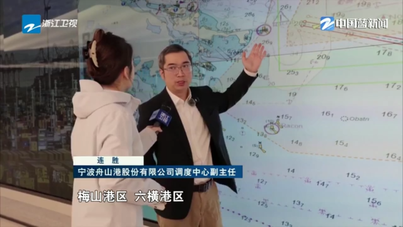 宁波舟山港调度指挥中心副主任 连胜:接下来,在我们条帚门航道进来以后,梅山港区、六横港区会有一些新增的码头建设。对未来这些港区新增能力的投用,会起到一个关键的作用。