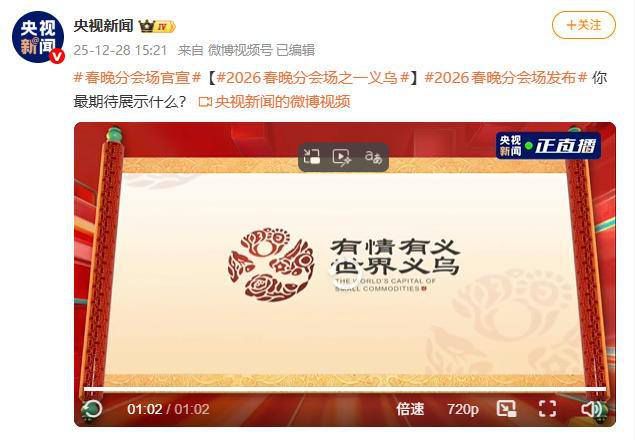 今天(12月28日)15点,中央广播电视总台《2026年春节联欢晚会》分会场发布活动举行。