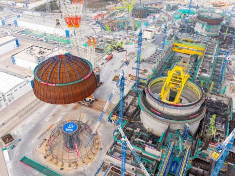 记者从中核集团获悉:4日,由中国核电投资控股的漳州核电3号机组内穹顶顺利吊装成功。该机组是我国“十五五”期间首台完成内穹顶吊装的核电机组,标志着其已从土建施工全面转入设备安装阶段,为后续安装调试及并网发电奠定了坚实基础,实现了漳州核电二期工程新年“开门红”。