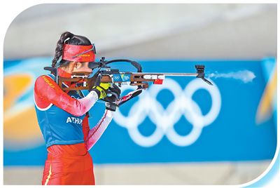 当地时间2月6日,中国冬季两项队选手褚源蒙在赛前训练。新华社记者 江 汉摄