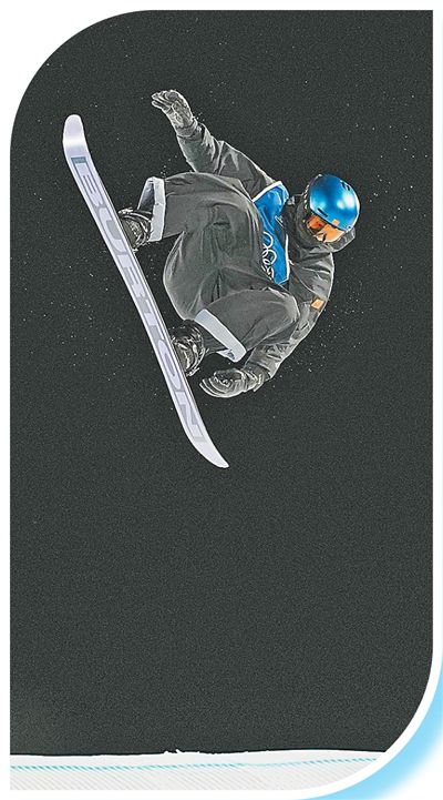 当地时间2月5日,中国队选手苏翊鸣在单板滑雪男子大跳台资格赛比赛中。新华社记者 胡 超摄