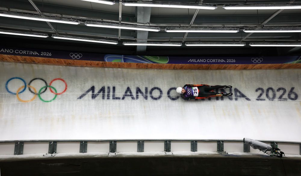 2月7日,中国选手鲍振宇在男子单人雪橇第二轮比赛中。新华社记者 丁旭 摄