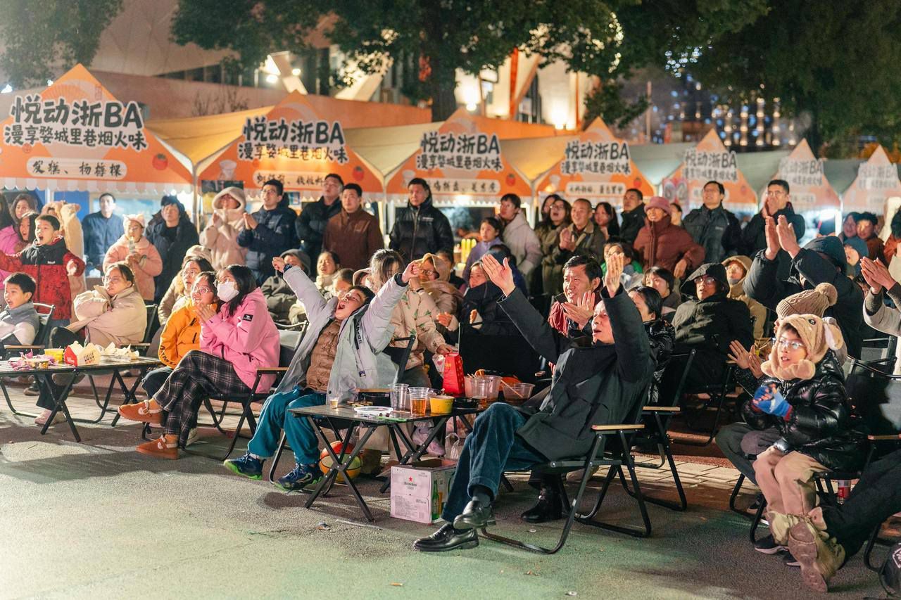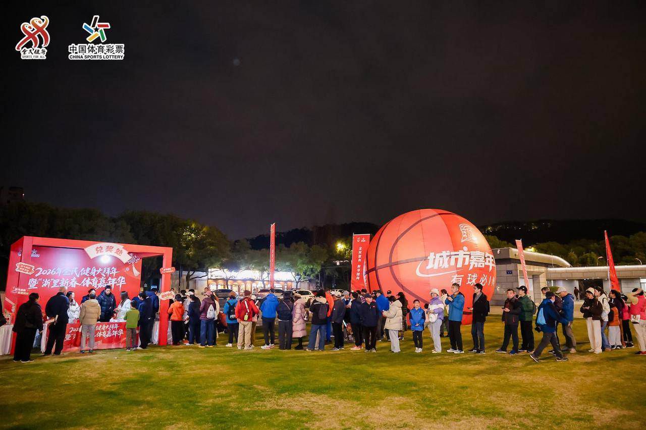 2月6日晚,浙江省城市篮球联赛(以下简称“浙BA”)迎来总决赛第四场对决。在浙江省黄龙体育中心体育馆内,是杭州队和丽水队的球员们为荣耀奋力拼搏;而在和体育馆仅一墙之隔的东广场上,浓缩全省11个地市风物文创等的“浙BA黄龙活力夜市”和“2026年全民健身大拜年暨‘浙’里新春体育嘉年华”也热火朝天。