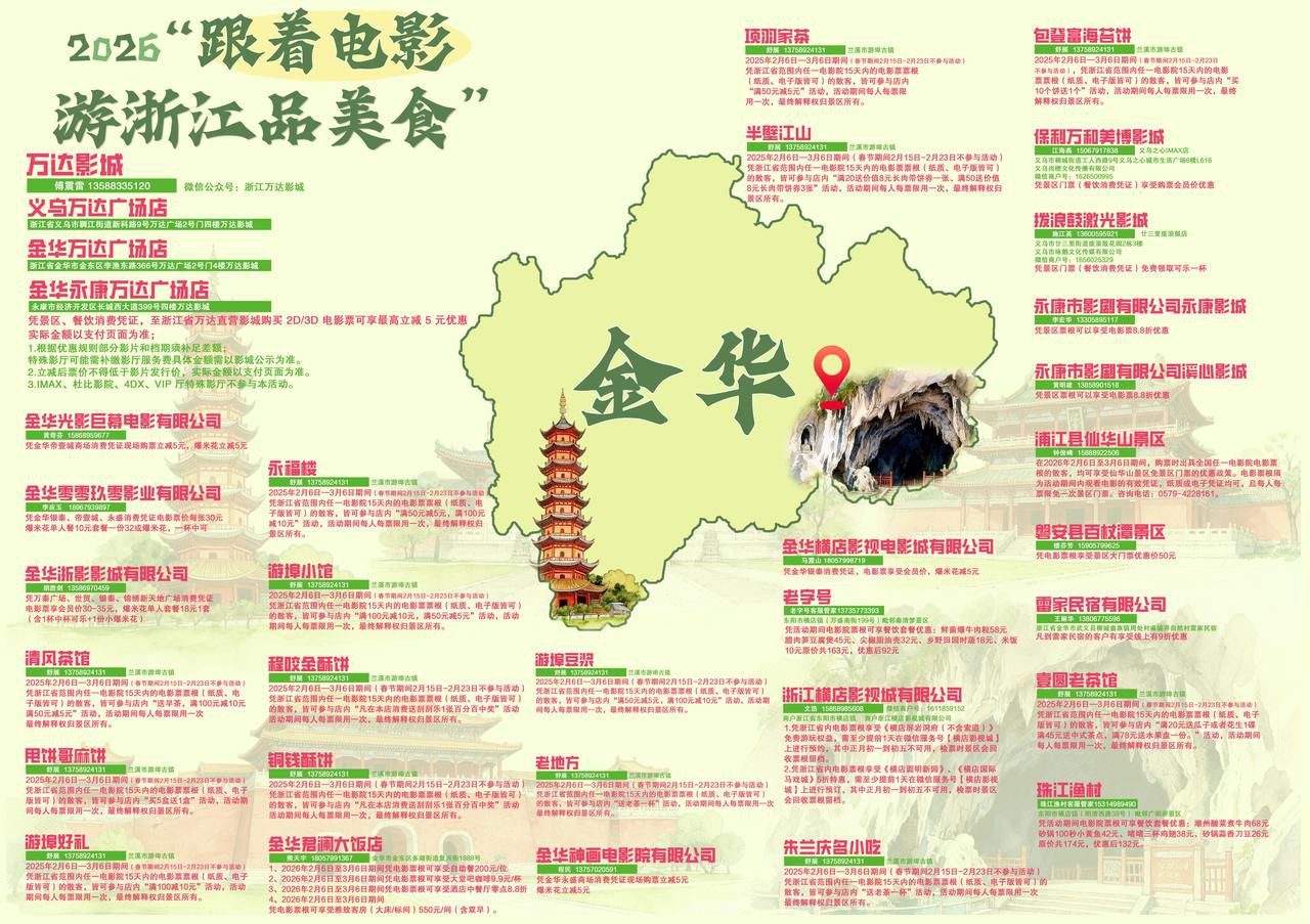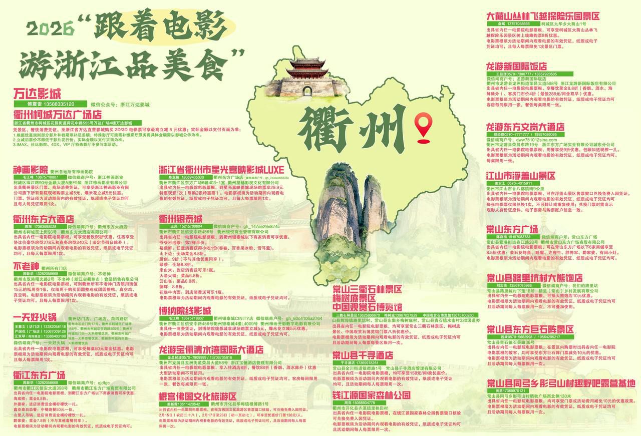 从衢州江山、湖州南浔到杭州,“跟着电影游浙江品美食”活动已经发布三期凭票根享优惠商家名单。活动得到了一大批景区景点、商圈街区和餐饮门店的积极响应,通过“观影+旅游+餐饮”的多重联动,有效激发了观众的观影热情,也持续释放文旅消费活力。