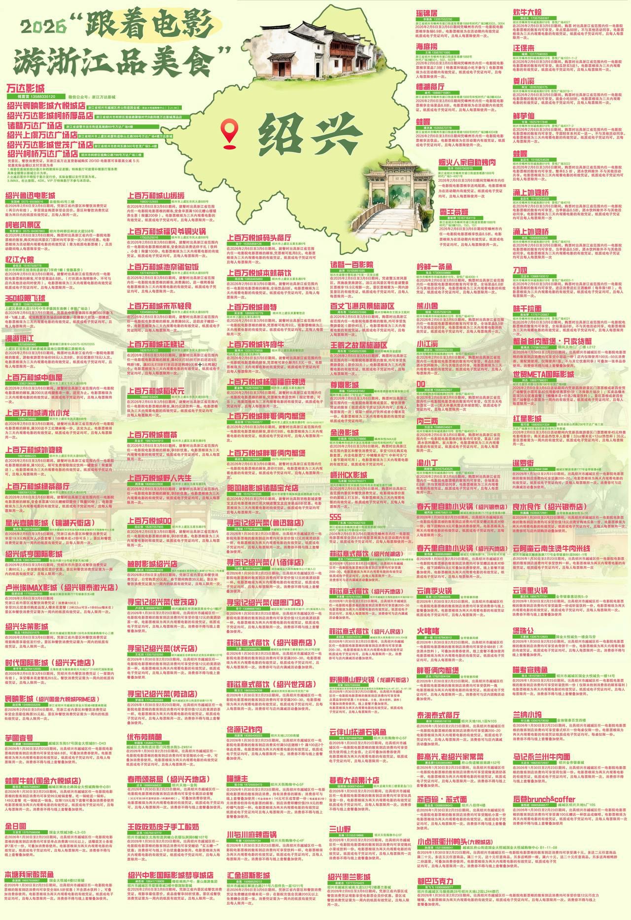 2月6日,2026年“跟着电影品美食”活动全国及浙江省启动仪式在绍兴举行,现场公布了“跟着电影游浙江品美食”新一批凭票根享优惠的商家名单,活动时间将覆盖春节档。