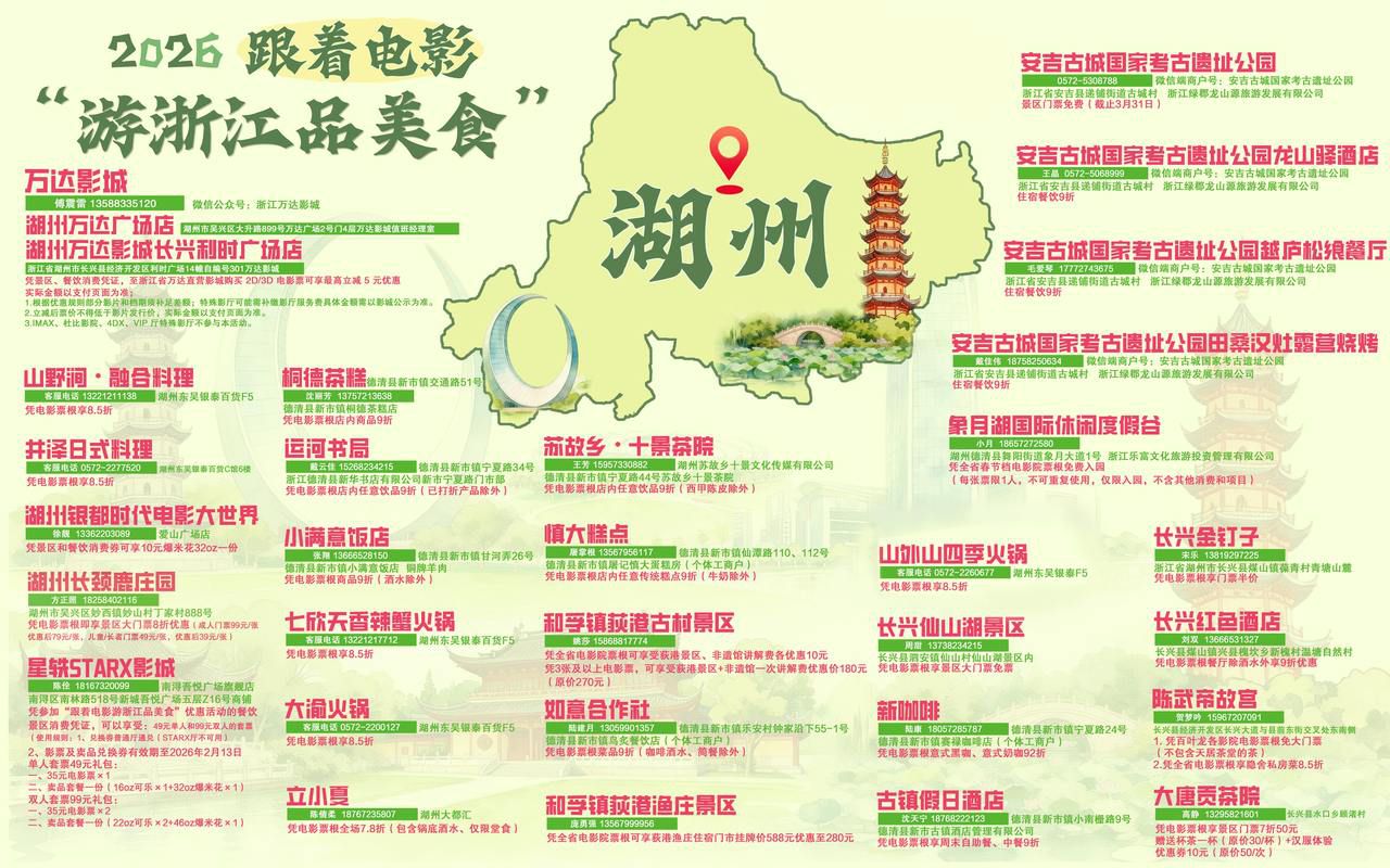 2026年浙江省将进一步加大力度,推出一系列“跟着电影游浙江品美食”优惠政策。