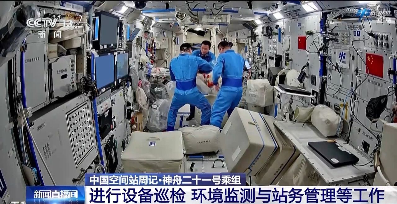 神舟二十一号乘组航天员张陆、武飞、张洪章的“太空出差之旅”已经超过三个月。中国空间站内的实验试验、环境监测等工作继续推进。