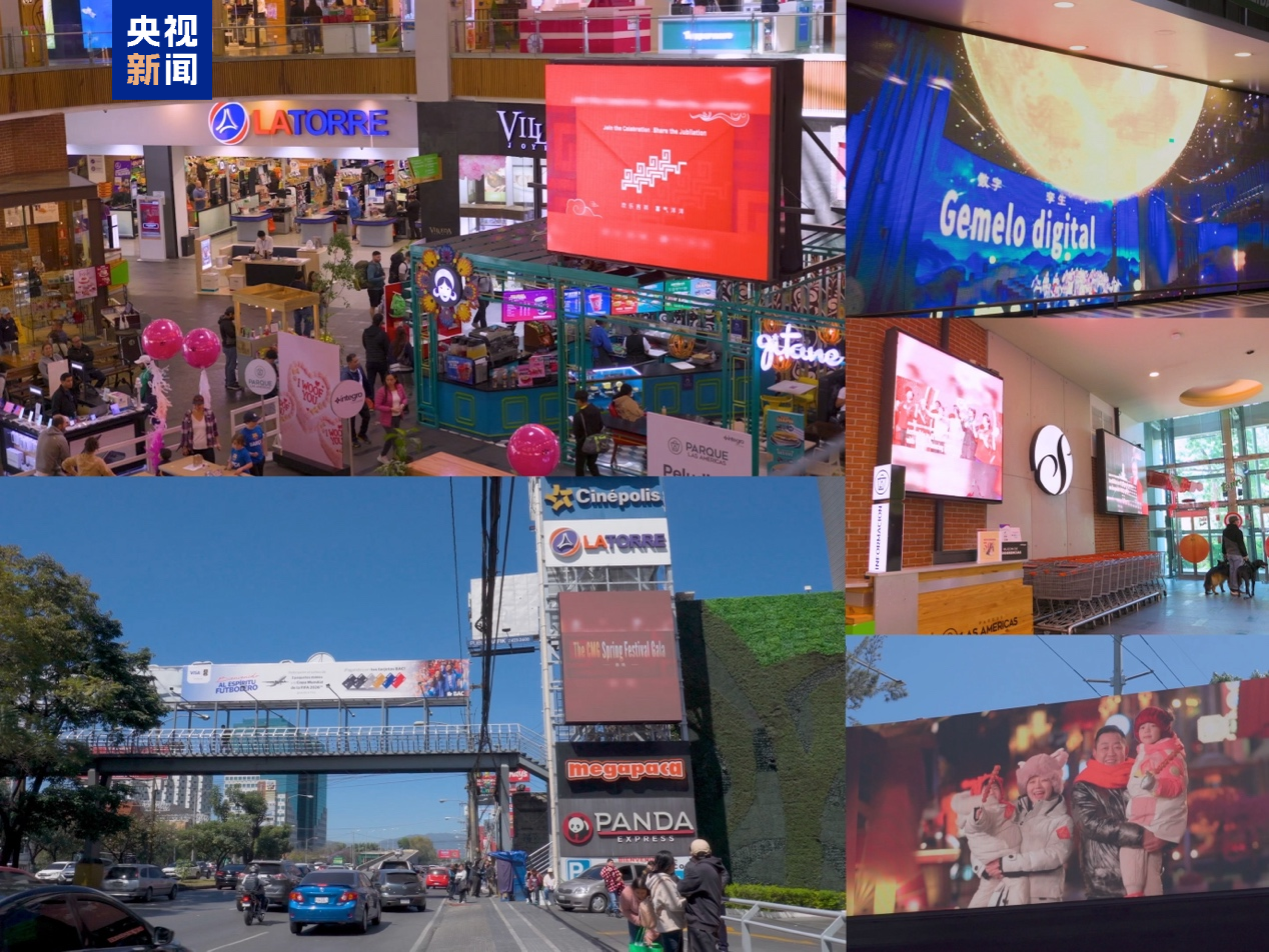 在位于危地马拉城“美洲公园”“鲁斯中心”和拉斯马哈达区等重要商业中心,总台春晚宣传片在室内外大屏幕上滚动播放,吸引过往民众驻足观看。