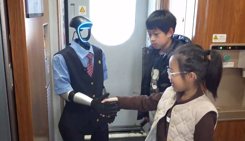 “福兴”不但能解答铁路客运规定、到站天气、旅游景点等问题,在列车工作间隙,它还化身“送福使者”,在乘务员为旅客送春联、福字的同时,用萌趣的互动送上新春祝福,让车厢里洋溢着浓浓的年味。