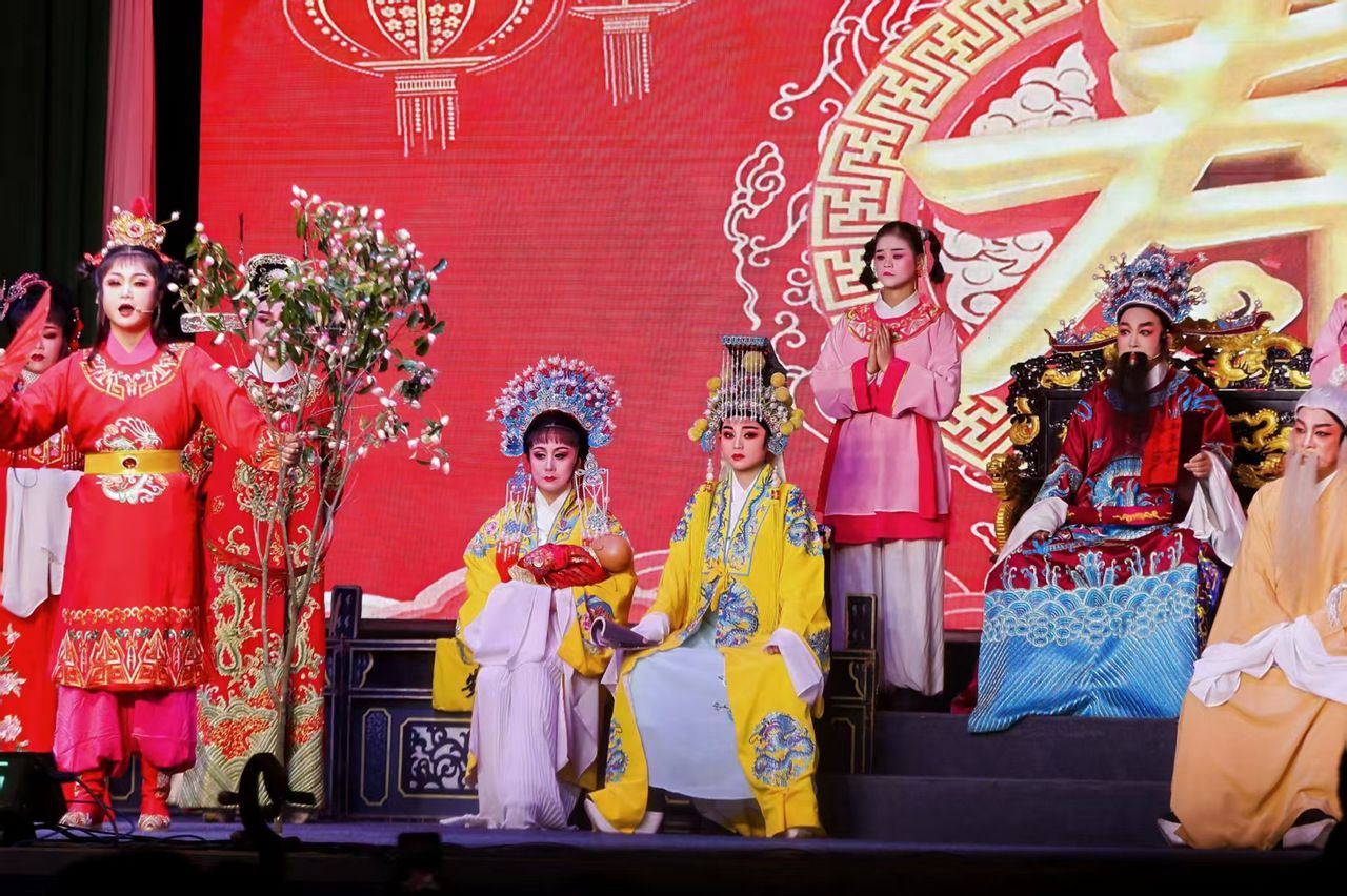 当天,景祐庙内外张灯结彩,人潮涌动。当地百姓自发云集,捧抬銮驾,以全鸡、全羊、全猪等传统供品敬祖祈福。舞龙表演翻腾起舞,地方戏曲婉转悠扬,吸引了十里八乡的群众前来赶庙会,共襄盛举。庙会外广场上,各类促消费市集摊位前人头攒动,热闹非凡。牛肉干面、海鲜米豆腐、葱油烧饼、米馒头、草莓等琳琅满目的地方特色美食和农产品,让游客大饱口福。