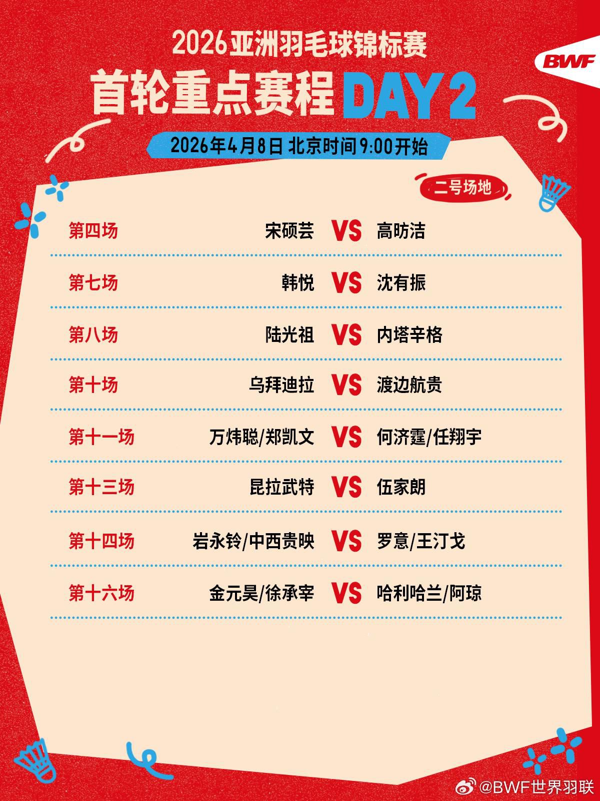 第二日赛程如下: