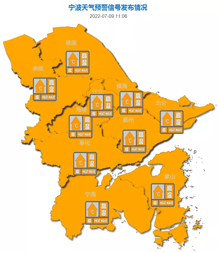 这个周末,宁波“炎值”爆表,昨天中午海曙等3地气温冲到了全国前10。今天高温继续,上午9时,宁波已经全域发布高温橙色预警。一起来看↓