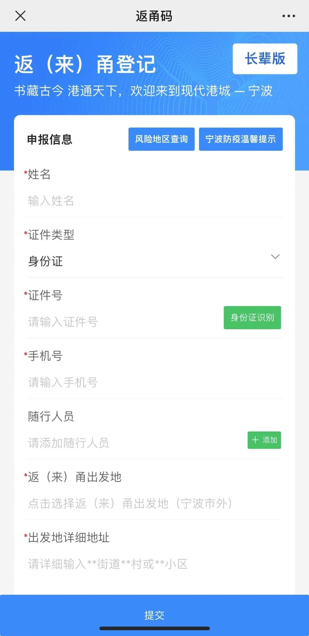 只要是从市外来(返)甬,即使是无疫情地区,都需要填写“返甬码”。