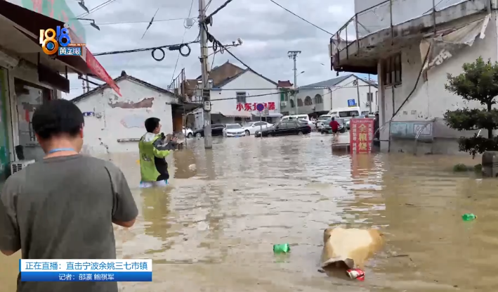 受台风“梅花”影响,昨天以来,浙江宁波、绍兴、舟山局部地区下了特大暴雨。中国蓝新闻记者接到消息,宁波余姚市的三七市镇积水较深,救援人员正在强排。