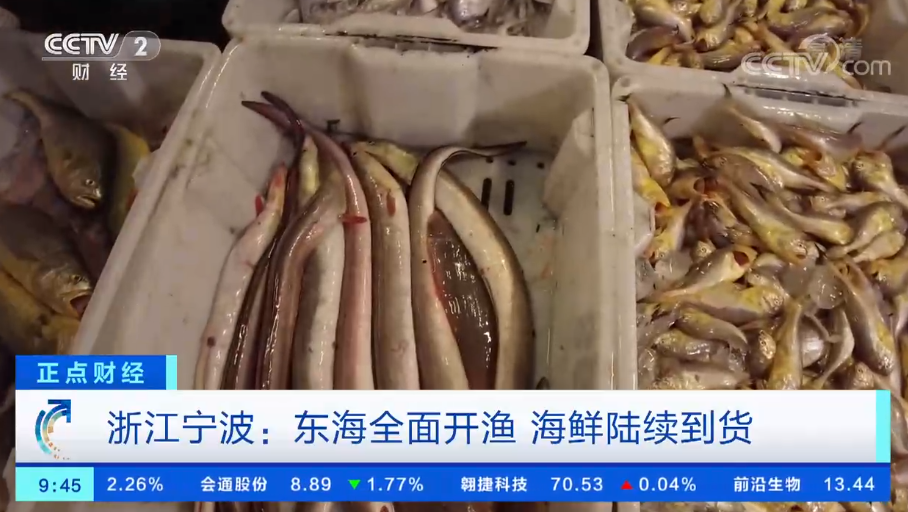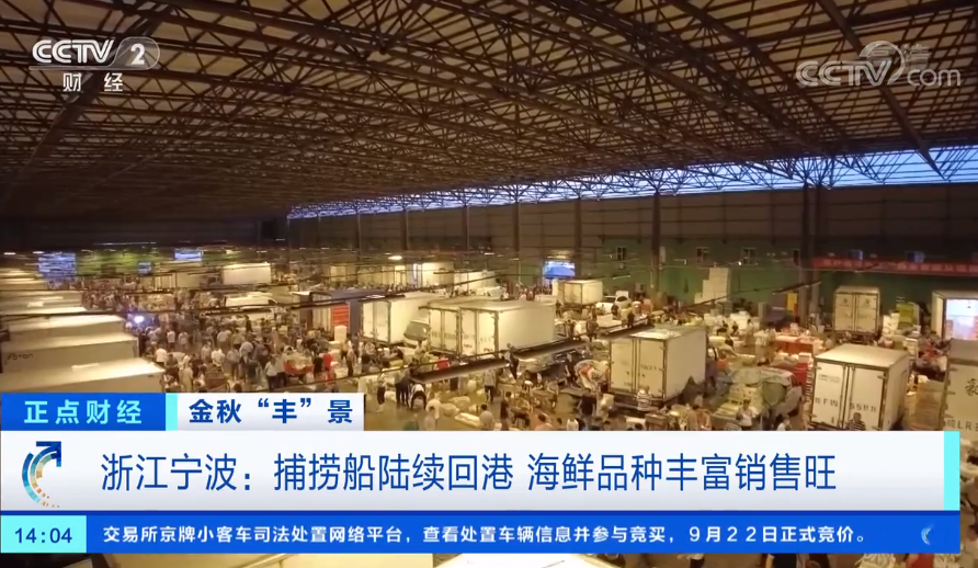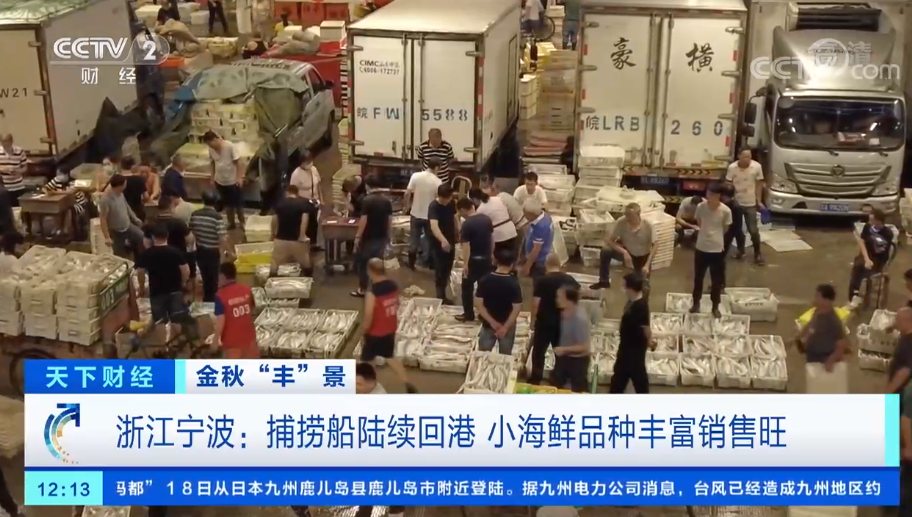 今天(9月19日),央视《第一时间》《正点财经》《天下财经》《中国三农报道》播出《金秋“丰”景 浙江宁波:东海全面开渔 “第一网”海鲜到货》,报道了东海全面开渔后的第一网东海海鲜已开始对外销售。但是受台风影响,捕捞时间短、数量不多。