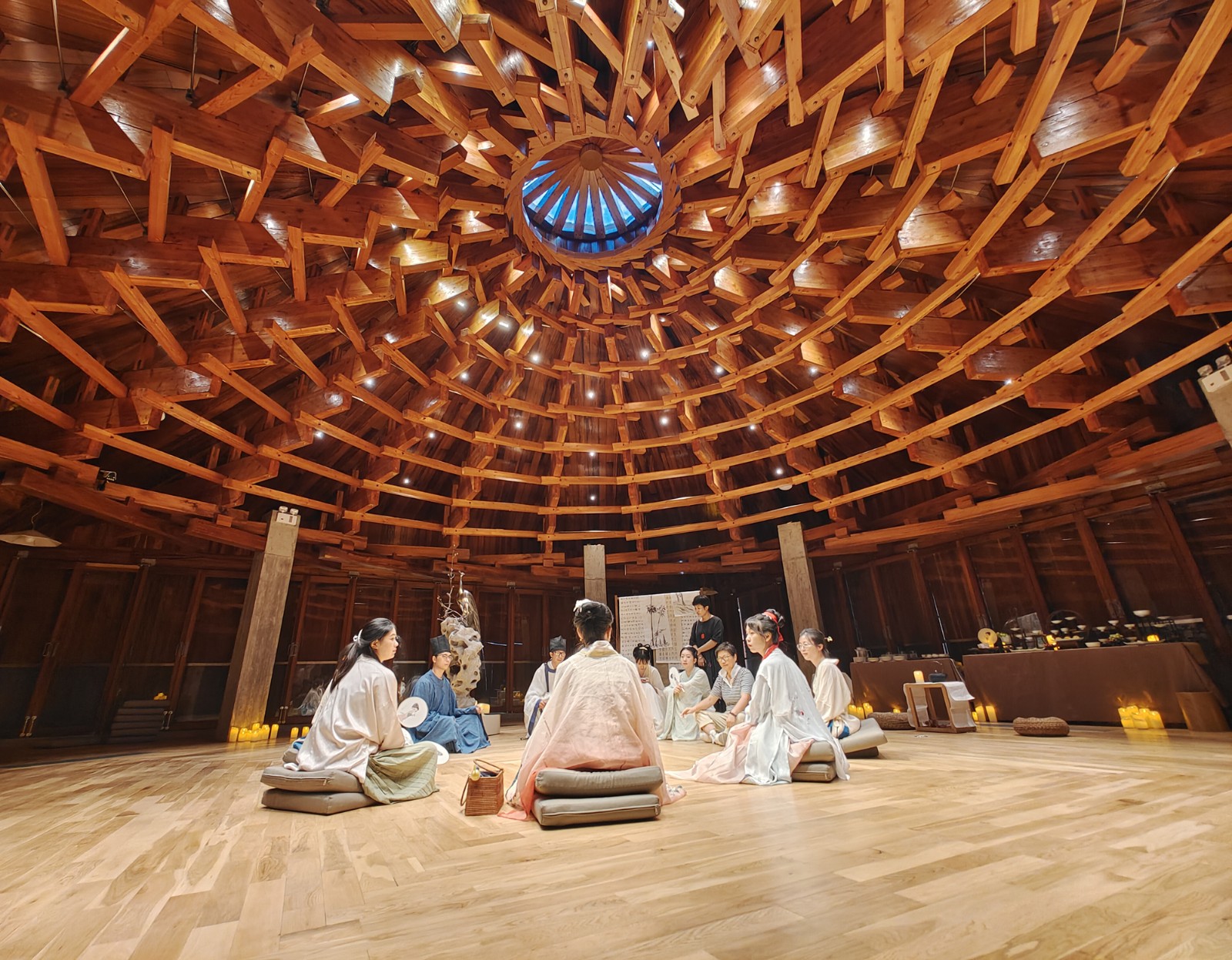 而在江北区,采风团来到了因保存着江南地区最古老、最完整的木结构建筑——大雄宝殿而闻名于世的保国寺。被称为长江以南“第一木构建筑”的保国寺大雄宝殿重建于北宋大中祥符六年,其木作工艺手法更是与我国第一部建筑典籍《营造法式》有着诸多相似之处,有的甚至成为其中的孤例。采风团成员也纷纷启动了自己的“考古雷达”,在立柱斗拱中寻找属于千年前的风华与古拙。