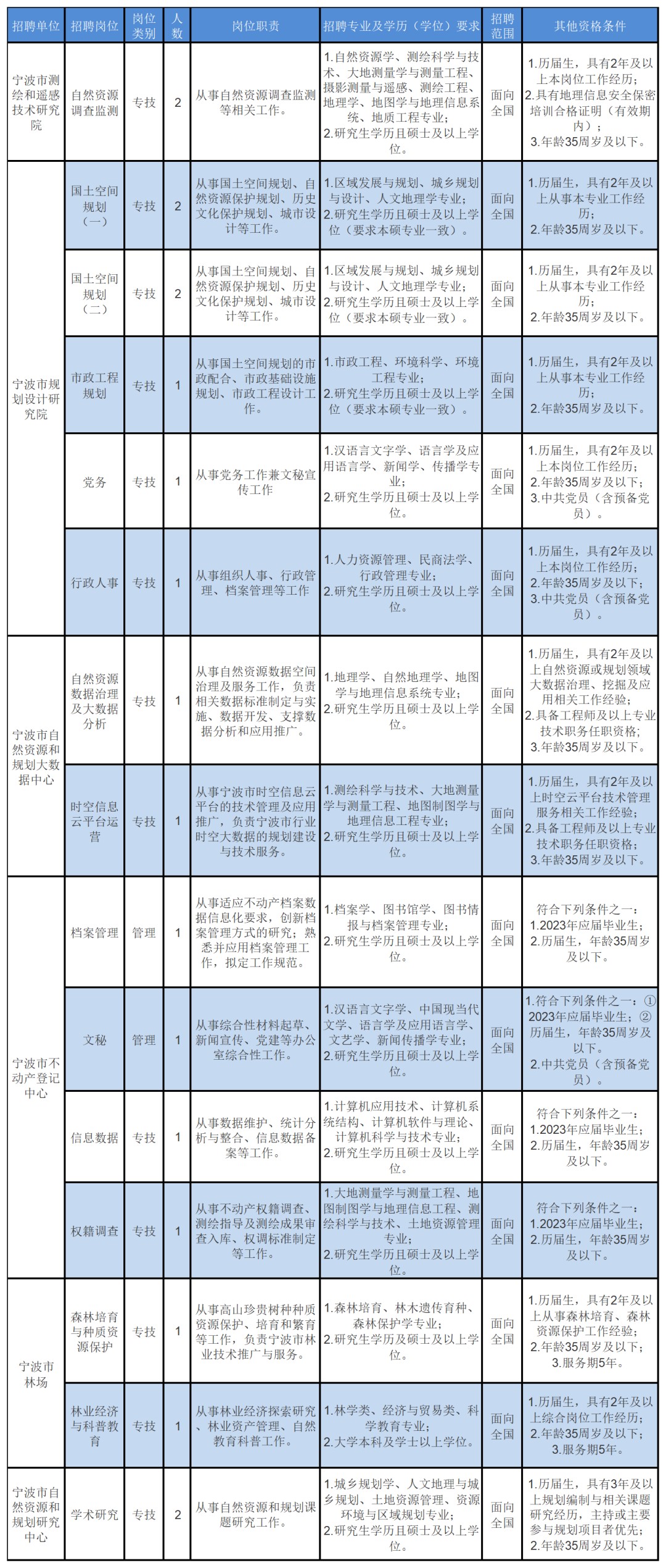 宁波市自然资源和规划局下属事业单位面向社会公开招聘事业编制工作人员19名。
