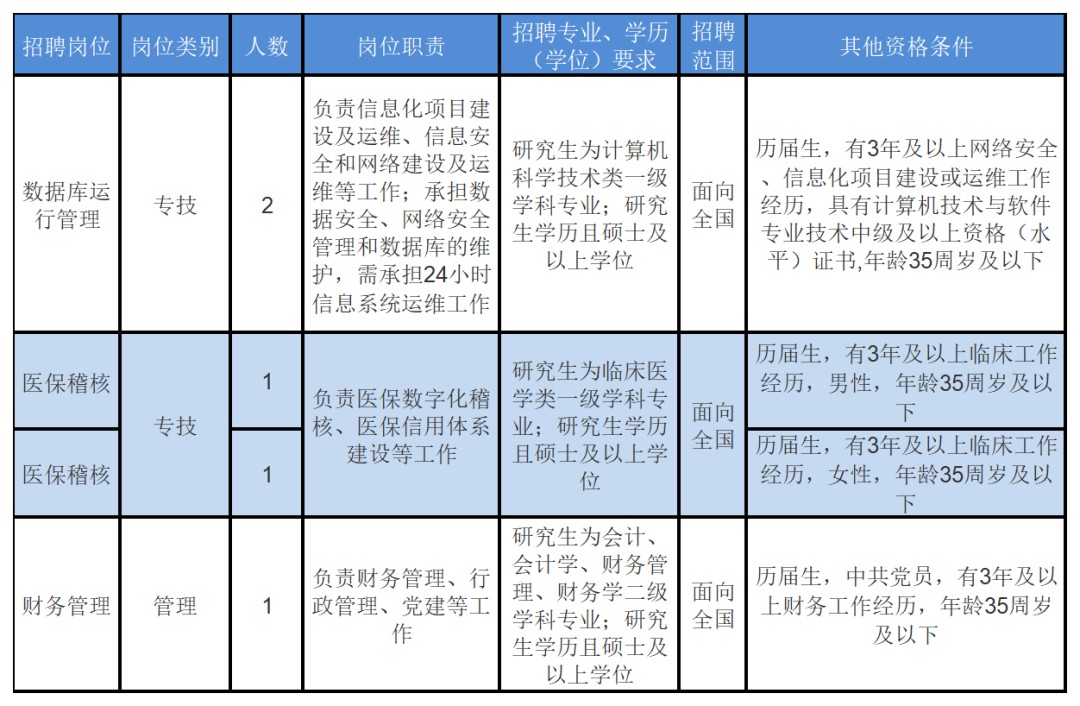 宁波市医疗保障局局属事业单位宁波市医疗保障基金管理中心面向全国公开招聘事业编制工作人员5名。