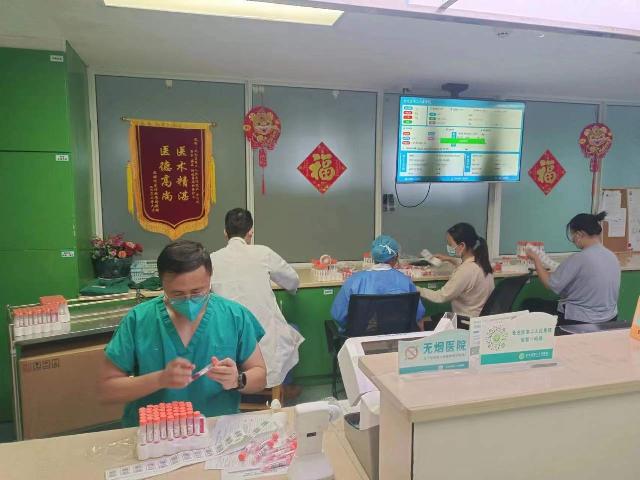 “我们都是流水线女工。”体检科副主任傅晶娜也说。嘴上说得俏皮,可是手里一直没停。她说,“相比前线,我们这点活不算什么。只要快点完成采样任务,少休息一会没什么。”
