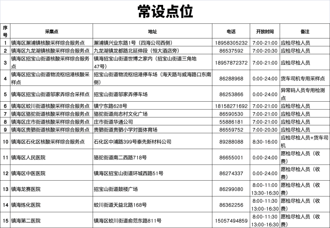 五、镇海区10月29日起的核酸采样点信息有调整(详见下表)。请大家做好个人防护就近选择采样点完成核酸采样。