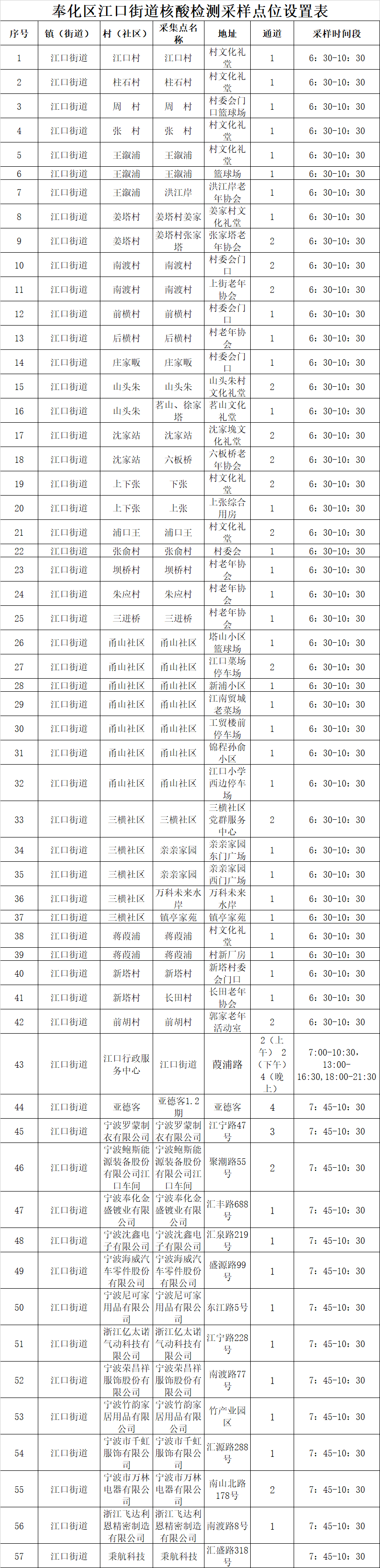为坚决阻断新冠肺炎疫情传播,经奉化区新型冠状病毒感染的肺炎疫情防控工作领导小组研究,决定组织开展锦屏街道、岳林街道、江口街道连续三天区域核酸检测。现将有关事项通告如下: