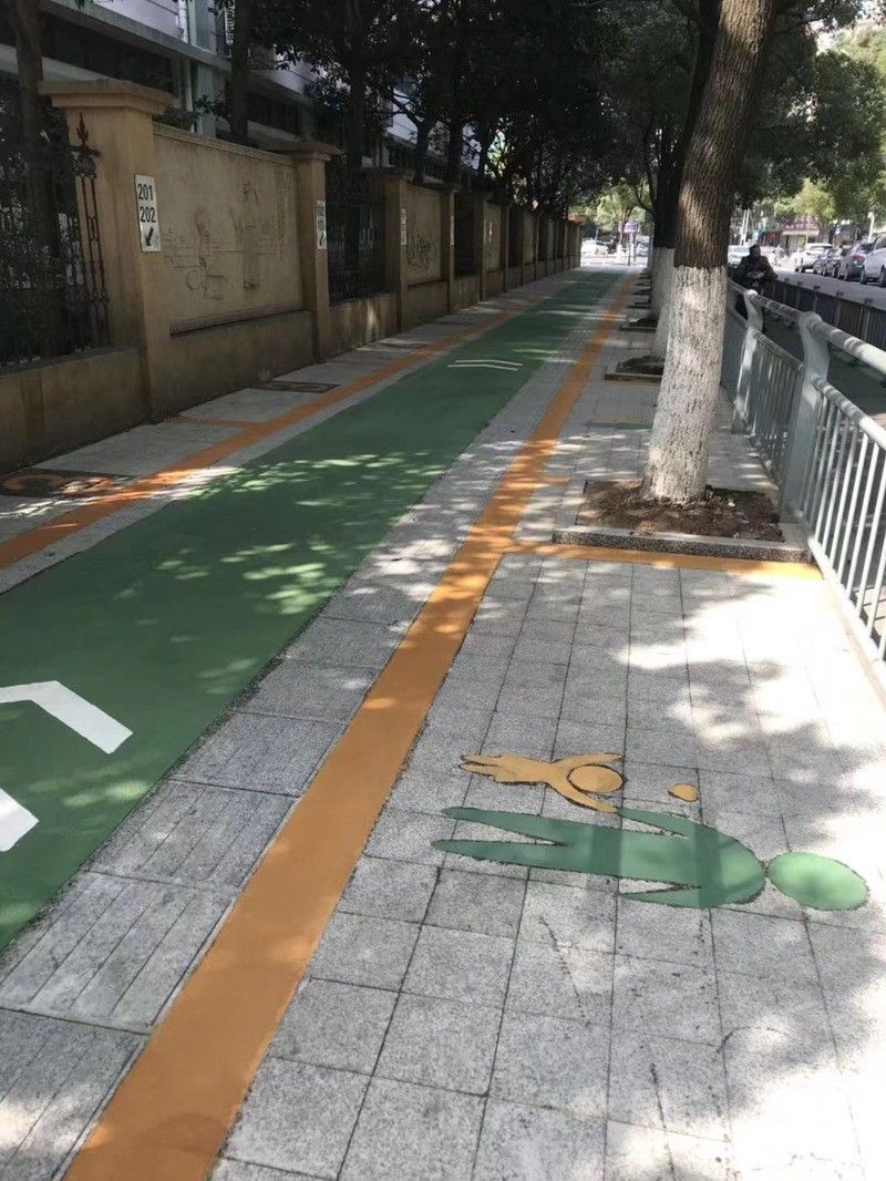 改造过程中,张莺跟校长商量,“能不能把标牌取下来,做成有线条、有方块的道路?”校长很热情,一口答应,学校也很配合,专门安排临时更改引导学生放学的路线。