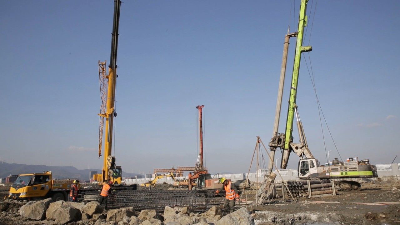“我们采用了分区块流水作业,优先完成桩基的区域,就率先进入承台立柱阶段。”竺辉说,“桩基阶段共需完成275根立柱,现已完成75根,占桩基部分的30%。软基处理相对较快,已完成60%。”