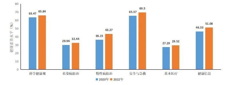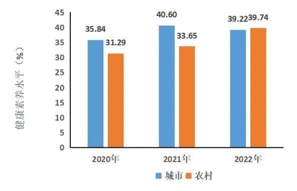 农村居民健康素养水平大幅提升,从2020年的31.29%增长至2022年的39.74%。