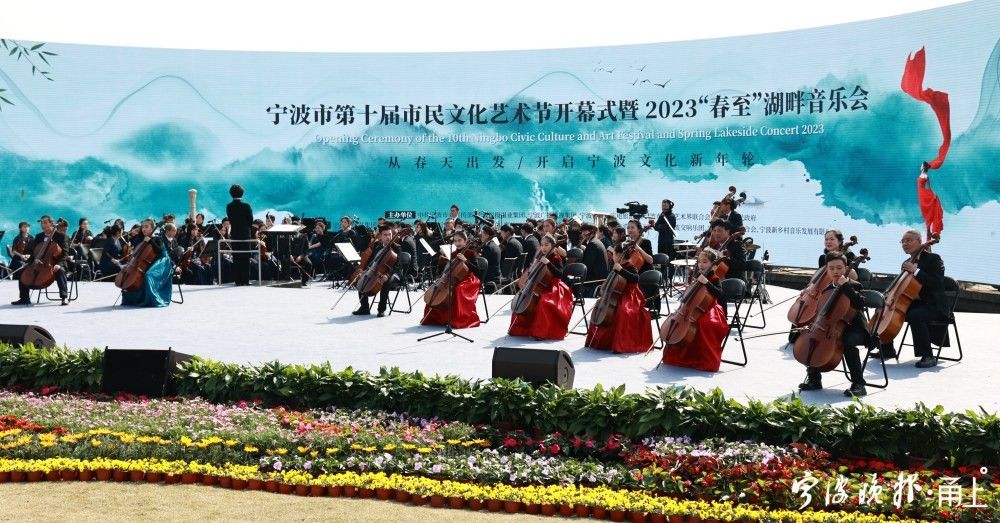 湖山开画图,浩歌咏春风。3月5日下午,宁波市第十届市民文化艺术节开幕式暨2023“春至”湖畔音乐会,在鄞州区东钱湖上水湖畔公园启幕。大提琴、诗朗诵、舞蹈、情景表演、交响乐、电音……伴随浩荡的东风,东钱湖滨奏响春之声。
